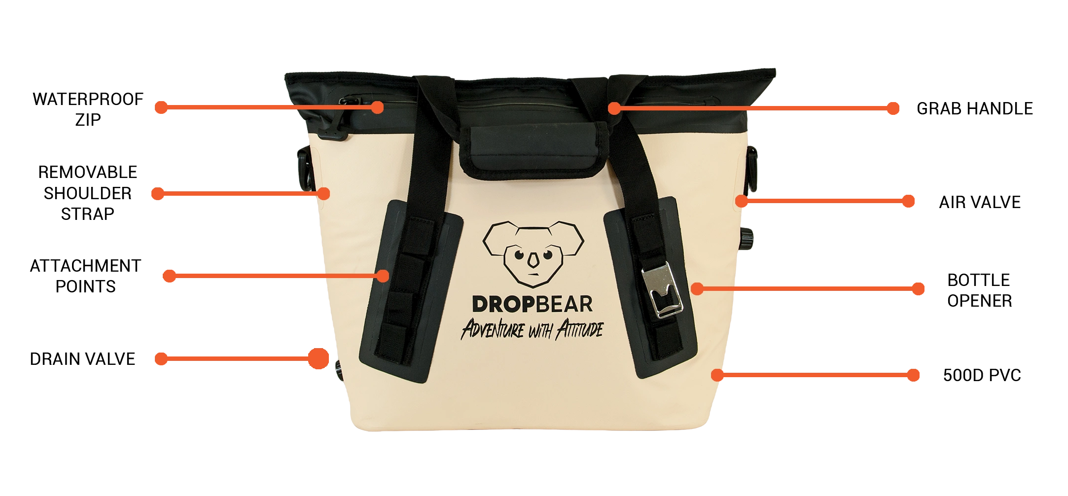 This bag is built for active use: beach days, boating, job-site knock-offs, camping trips. It’s waterproof and sealed for the lot — but still treat it with care and respect.